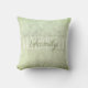 Rustikale Textur sage Grün Kissen mit Namen in Skript und san Serif Typografie. Fügen Sie hinter dem Wort "Familie" Ihren Familiennamen hinzu. Stilvoll und künstlerisch.