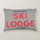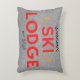 Dekorieren Sie Ihre Skihütte mit diesem rustikalen Kissen. Hellrote Buchstaben und Skis auf einem Imitat grauem Filzhintergrund. Passen Sie Ihren Namen und Ihr Datum an.