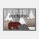 Türmatte mit rustikalem Design schneebedeckter Berge, Büffel-Bär kariert/Karo und personalisiert mit einer Begrüßungsbotschaft und Ihrem Familiennamen. Ideal für Ihre Zuhause oder Ferien in den Bergen.