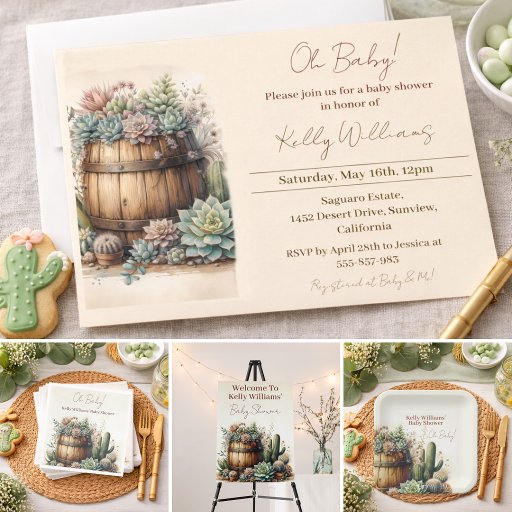 Rustic Succulents & Cacti Baby Shower Party RangeDesignt von Printable Pics