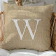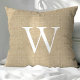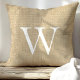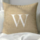 Speziell entworfenes Kissen mit einer rustikalen Tan Burlap Textur. Personalisieren Sie es mit Ihren Monogramm-Initialen, Namen oder anderen benutzerdefinierten Text. Klicken Sie auf Anpassen, um eigene Texte und Bilder hinzuzufügen, um ein einzigartiges Kissendesign zu erstellen!
