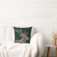 Rustikale Waldszene überlagert auf einer Hirschkopf-Silhouette über einem dunkelgrünen Hintergrund. Das Design ist auf beiden Seiten des Kissens gleich. Dies wäre ein hervorragendes Geschenk für einen begeisterten Jäger oder eine Jagdfamilie!