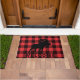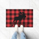 Ein zeitloses rotes und schwarzes Büffel kariert in Rot und Schwarz mit einem sich wandelnden Elch Silhouette Begrüßungstürmatte. Kariert geht nie außer Mode. Ideal für Zuhause-Badezimmerdekoration oder rustikale Kabinendekoration.
