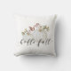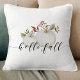 Individuell gestaltetes festliches Kissen mit "Hallo Fall", moderner Handkalligraphie mit weißem Kürbis und Blattdesign.