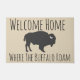 Türmatte Amerikas des niedlichen Westerns themed, die die Phrase "Willkommens-Zuhause kennzeichnet, in dem der Büffel" in Grauem durchstreifen sowie eine graue Büffel-Silhouette mit weißem Horn.