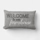 Modernes Bauernkissen mit grauem Imitat. Nutzen Sie dieses Begrüßungskissen, um Ihre Wohnzimmerdekoration mit einer rustikalen Touch zu versehen und die Gäste zu begrüßen.