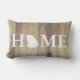 Rustikales elegantes lumbales Kissen, das einen hellen hölzernen Plankenhintergrund mit dem Wort "ZUHAUSE" und das "O" ist eine Silhouette des Staat von Georgia kennzeichnet. Die Rückseite hat Ihren Familiennamen im weißen Text.