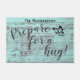 Herzlich willkommen bei Ihren Gästen mit diesem lustigen Skript Typografie rustikale Türmatte Design personalisiert mit einem Namen und "Vorbereiten für einen Umarmung". Füllen Sie das Textfeld mit einem Familiennamen aus, entfernen Sie den Namen, oder klicken Sie auf Anpassen, um einen Schriftart Stil, Größe und Farbe auszuwählen, den Sie bevorzugen.