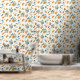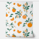 Akzentuieren Sie Ihre Wände mit dieser gemusterten Tapete aus Zitrusfrüchten. Es zeichnet sich durch lebhafte Orangen und Orangenblüten mit üppigem Blattwerk aus.