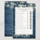 Mit hübschen Saitenlichtern und zarten Aquarellfarben-Blätter auf rustikalem blauen Holzfußboden kann dieses lustige Brautparty Tee Party Spiel personalisiert werden mit Ihrer eigenen Vermutung, wer Fragen stellt. Entwickelt von Thisisnotme©
