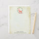 Letterhead mit digitalem Aquarelldesign. Eine pastellorangefarbene Rentiere-Silhouette in einem Kranz von Kräutern-Blätter. Pilze und Waldfarne zu seinen Füßen. Hintergrund ist eine Pergamentstruktur für Imitate. Personalisieren Sie mit Ihrem Namen und Ihrer Adresse.