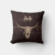 Rustikale Bulle Schädel Western Cowboy alte Textur Grunge Monogramm Wohnzimmer Couch werfen Kissen. Personalisieren Sie Ihre braunbeige Bauernhof inspirierte Wohngestaltung. Coole, trendige, moderne, Vintage Bauernarchitektur. Bildrecht Marg Seregelyi Fotografie.