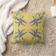 Auf diesem Throw-Kissen hat das empfindliche, ursprüngliche Muster des dunkelblauen Blätter auf einem rustikalen gelben Hintergrund den Blick der alten Welt, Land Franzosegewebe. Das Muster wurde von einer ursprünglichen Fotografie des Petunie-Blätter gemacht.