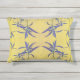 Auf diesem Akzent-Kissen im Freienhat das empfindliche, ursprüngliche Muster des dunkelblauen Blätter auf einem rustikalen gelben Hintergrund den Blick der alten Welt, Land Franzosegewebe. Das Muster wurde von einer ursprünglichen Fotografie des Petunie-Blätter gemacht.