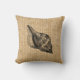Rustikales Burlap Beach Thema Seashells Throw Kissen. Kissen mit Tan und schwarzem Akzent für Ihr Hausboot, Strandhaus oder Seehaus.