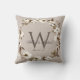 Personalisierte Hochzeitssache. Dieses elegante, rustikale Design-Kissen im digitalen Leinendesign besticht durch eine beige Leinenstruktur mit einem wunderschönen Urinkranz aus Baumwolle, der den klassischen Monogramm-Initial bildet. Die Vornamen des Ehepaares werden über das Monogramm zunächst in einem schönen Kalligraphie-Skript geschrieben, mit dem Hochzeitstermin unten. Das Design ist sowohl auf der Vorderseite als auch auf der Rückseite identisch. Ein großartiges Geschenk für die Neuvermählten. Ideal für Ihr Schlafzimmer, Ihren Lieblingsstuhl, eine formale Dekoration in Ihrem Wohnzimmer oder einfach nur für eine unterhaltsame Dekoration in Ihrem Familienzimmer. Die Farben aller Textfelder können nach Belieben geändert werden.