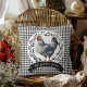 Rustikales Country Rooster Chicken BW Gingham Karo Kissen