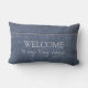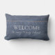 Rustikale Imitate denim blau Willkommen auf meinem winzigen Zuhause Lumbar Outdoor Kissen. Sie können ganz einfach Ihren eigenen Text hinzufügen, um ihn zu personalisieren.