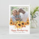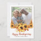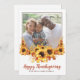Eine rustikale Thanksgiving-Karte mit einem familiären Foto mit Sonnenblumenrahmen und einer modernen Schriftzeichen-Typografie. Personalisieren Sie Ihre Daten mit Ihrem Familiennamen.