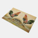 Willkommene Fußmatte des Bauernhauses mit 2 bunten Hähnen, die Sie verbinden, um Ihre Gäste zu grüßen.