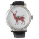 Rustikales Hirsch-Rotes und Kariertes Tartan-Muste Armbanduhr