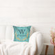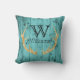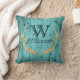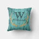 Das einzigartiges, aquamarines und Goldrustikale hölzerne Blickkissen, das für ursprüngliche Kabinendekor ImitatgoldGlitter-Rotwildgeweihe perfekt ist, gestalten eine riesige, schwarze klassische Artmonogramminitiale über Familiennamemonogramm in der modernen Beschriftung. Zentriert gegen ein rustikales, hölzerner Blickhintergrund der Woodgrainscheune im aquamarinen Blau des Türkises. Identisch auf beiden Seiten. Cozy, rustikaler Landdekor mit einer Touch von Bling für eine Kabine im Holz, Geschenk für Rotwildjäger oder Tierliebhaber oder niedliches Waldtierthema für aquamarinen Kinderzimmerdekor.