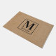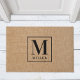 Maßgeschneiderte Türmatte mit rustikalem modernem Schwarz und natürlichem Design mit personalisiertem Familiennamen Monogramm.