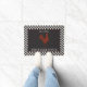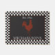 Mit dieser rustikalen, rostigen und weißen Monogramm-Türmatte mit schwarz-weißem Karo und einem dunkelroten Hahn in der Mitte zeigen Sie Ihren Familienstolz direkt an Ihrer Haustür. Personalisieren Sie mit Ihrem Familiennamen und Jahr festgelegt. Design by Holiday Hearts Designs (Rechte vorbehalten).