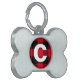 Dieses dekorative rote und schwarze Büffel karierte Begleiter-Tag in Gestalt eines Hundebones weist ein Monogramm in einer einfachen und sauberen Typografie in Weiß auf. Niedliche Dekoration, um Ihren Hunden Kragen hinzuzufügen. Entworfen von der Künstlerin Susan Coffey.