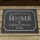 Fügen Sie Ihren Familiennamen und Ihre Initialen in die rustikale Tafel mit einem Kreideherz im Wort ZUHAUSE und begrüßen Sie Ihren Gast mit rustikalem Chic!