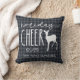 Rustikales Weihnachts-Blue Buffalo Kariertes Kissen mit handgeschriebenem Text, der mit einem Reh "Feiertagsjubeln" und mit Ihrem Familiennamen personalisiert ist. Eine perfekte Ergänzung zu Ihrem Land Weihnachtsdekoration. Das Kissen ist Teil einer Sammlung.