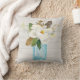 "Rustikales Weißholz Magnolia Blumenglas Vase Kissen Kissen." Das helle und luftige Holz aus weißer Hütte wurde in Aquarellfarben gestrichen und mit einer Magnolienblüte mit braunem und grünem Blattwerk, Zweigen, Eukalyptus und getrocknetem Grün für ein Hof mit elegantem Kissen aus Wohngestaltung kombiniert. Hergestellt von Audrey Jeanne Roberts, international lizenzierter Künstlerin und Designerin, Urheberrecht.