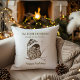 Niedliches, naturbelassenes Holiday-Kissen mit originellen Kunstwerken einer skurrilen, schlafenden Eule mit einem altmodischen Nachtkissen mit den Begrüßungen "OWL BE ZUHAUSE FOR CHRISTMAS, wenn auch nur in meinen Träumen.." und "Happy Holidays" in Goldschrift. Die Rückseite ist ein rustikales, winterweißes Birkenholzmuster.
