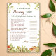Testen Sie, wie gut Ihre Gäste mit dieser Spielkarte zum Thema "Süßwald" die Mama-to-be kennen! Mit Aquarellgrün, Waldpilzen und sanften Erdtönen fügt es sich perfekt in eine rustikale Babydusche ein und sorgt gleichzeitig für Spaß und Lachen.