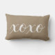 Braunes Kraftpapier Hintergrund mit dem Xoxo Text. Koordination der quadratischen Kissen vorhanden.