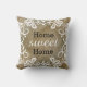 Ein rustikales Throwkissen mit einem Imitatleinwanddruck. Das Zitat "Zuhause-süßes Zuhause" fügt einen trendy und Chicblick dem Landart-Akzentkissen für Ihr Zuhause hinzu. Ein dekoratives weißes Blumenstrudelmuster gestaltet die Typografie.