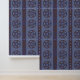 Gotisches okkultes Symbol rostig Pentagramm Streifen Design für eine einzigartige und strukturierte Tapete. Entworfen, um meine solide Koordinate Design Pentagram Blue. Es ist auch ein passendes Tapeten-Rahmen-Design verfügbar, das für den Einsatz von oben und unten geeignet ist. Das Design wiederholt sich alle 2' auf jeder Rolle, und wenn Sie jede Rolle auf derselben Wandhöhe hängen, werden die Kanten leicht ausgerichtet. Bitte beachten Sie dies bei der Auswahl von Rollen, wenn Sie eine Wandhöhe mit einer seltsamen Messung haben.