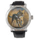 Uhr, Vintage Männeruhr mit schwarzem Lederarmband