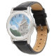 Uhr, Klassische Damenuhr mit schwarzen Lederarmband