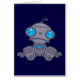 Vector Cartoon Illustration eines niedlichen, aber traurigen kleinen Roboters mit blauen Augen auf dem Boden.