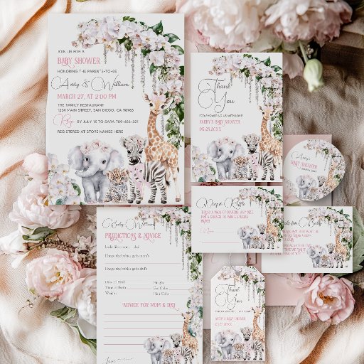Safari Animal Tropical Blume Pink Baby Dusche Einladung