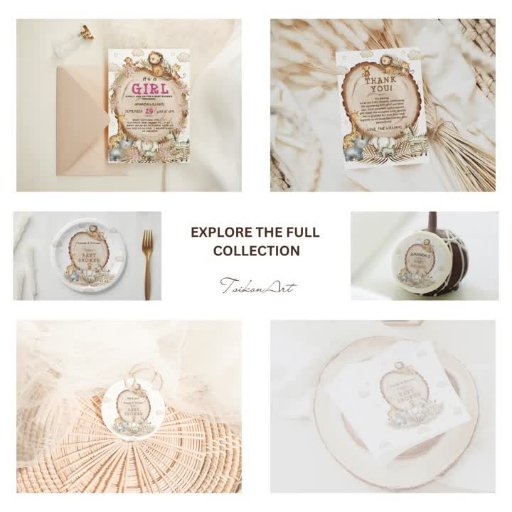 Diese einzigartige Babydusche bietet eine Mischung aus Vintagen rustikalen Akzenten in warmen Tönen wie Beige, Braune und Frische. Adorable Dschungeltiere, darunter ein Löwe, Affe, Tiger, Zebra, Rhino, Elefant und Giraffe, fügen eine spielerische Touch hinzu. Elegante Pampas-Gräser und Blätter aus Palmen ergänzen den Holzschnitt und schaffen eine gemütliche und einladende Atmosphäre.