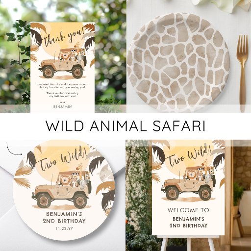 Sie suchen die perfekte Karte, um Ihren Gästen zu danken, dass sie zu Ihrer kleinen Geburtstagsparty gekommen sind? Schauen Sie sich nur unsere bedankten Safari-Karten an, mit einem Safari-Truck voller Safari-Tiere aller Art, darunter ein Löwe, der den LKW fährt, ein Leopard, ein Meerkat, eine Giraffe, ein Elefant und ein Zebra. Die Dankeschön-Karte zeigt auch eine große Sonnenstrahlen im Hintergrund und tropische Blätter in erdigen Safari-Tönen in Beige und Braun. Die Vorderseite der Karte hat eine niedliche Meldung, die Sie behalten haben oder Ihre eigene hinzufügen können. Auf der Rückseite verleiht ein braunes Tierprint dem Design eine Touch Spaß und Spannung. Und das Beste? Die Einladung ist leicht zu personalisieren, sodass Sie Ihre eigene Touch hinzufügen können, um es wirklich einzigartig zu machen.