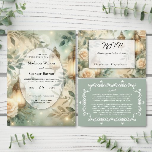 Sage Green and Ivory Rose Lantern Wedding SuiteDesignt von Lacey Moyer