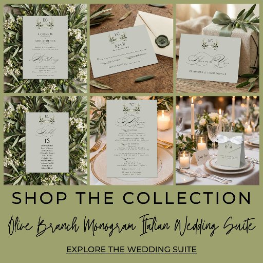 Part of the Sage Green Olive Branch Monogram Wedding Suite, an elegant design featuring a refined olive branch monogram, delicate botanical details, and timeless calligraphy—creating a cohesive wedding aesthetic with refined elegance.