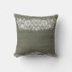 Sage Green Rustic Wood & White Lace Lacy Bauernhof Kissen