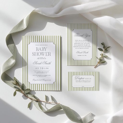 Sage Green Stripes Baby Shower CollectionDesignt von Iolan Gloria