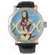 Uhr, Vintage Männeruhr mit schwarzem Lederarmband