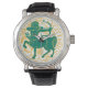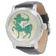 Sagittarius Zeichen des Zodiaks in grün und weiß auf einer Armbanduhr.
