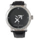 Uhr, Vintage Männeruhr mit schwarzem Lederarmband